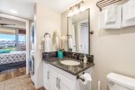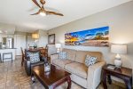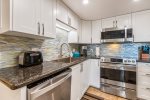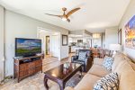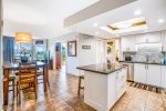 This stylishly remodeled top floor unit (with elevator) has a well-equipped modern kitchen with granite counters, remodeled bathrooms, flat screen TV in living room and bedroom, and double-wide lanai (patio). This unit also has air conditioning in the bedroom (many Maui Banyan units do not have AC in this bedroom) as well as washer and dryer.