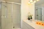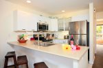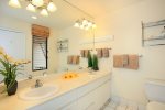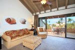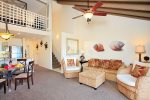 Spacious 2-story unit with designer furnishings and flatscreen TVs in each room plus Nintendo Wii for family fun. Air-conditioned with 3 separate lanais (patios), one off the living room, and one off of each bedroom. The upstairs loft master suite has a private bathroom with walk in shower. It is furnished with a pillowtop queen bed and large flatscreen TV. The second bedroom is modern also has a queen bed, private lanai, and large flatscreen TV.